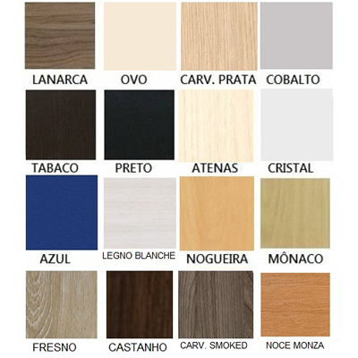 BP 15mm, perfil em PVC, pés em aço com sapatas niveladoras.